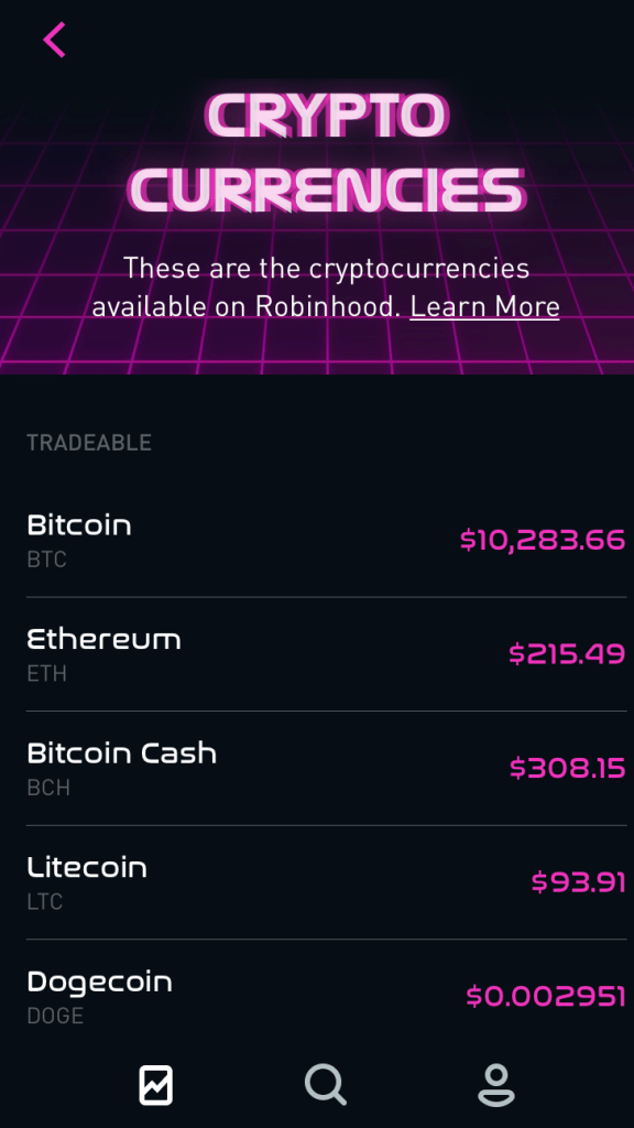 Robinhood also offers the ability to trade cryptocurrencies. There are a number of cryptos supported, so if you’re wanting to invest in bitcoin but don’t want to deal with setting up a wallet, Robinhood is a great solution.
